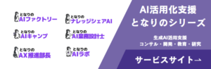 となりのAIコンサル、となりのAIファクトリー、となりのAIキャンプ、となりのAIラボなど