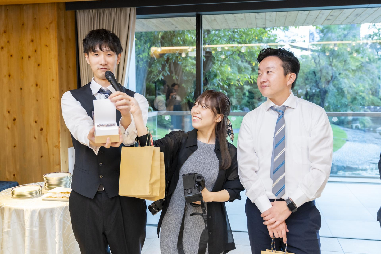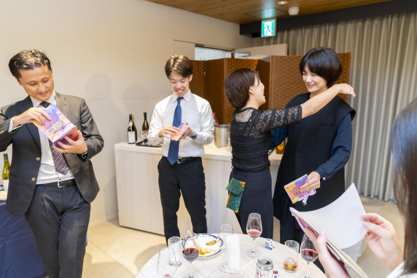 入社1年を迎えたメンバー3名からプレゼントのサプライズが!!